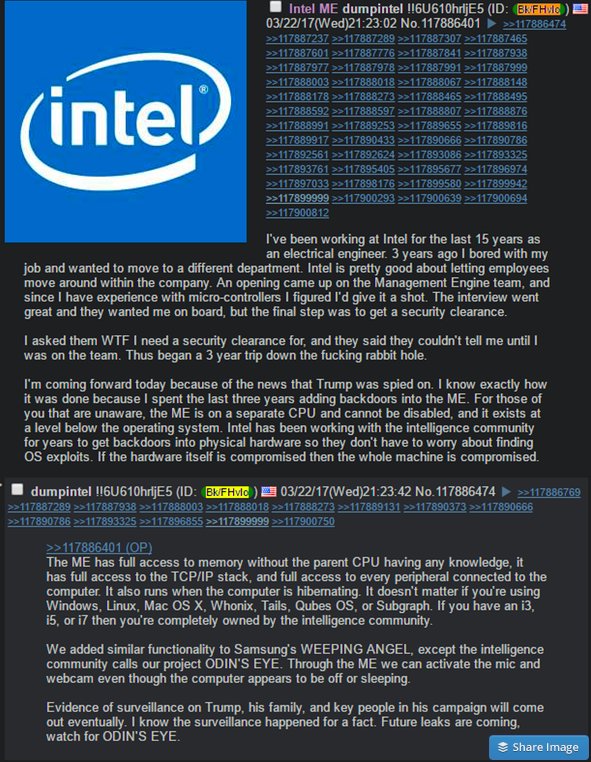 | KotCzarny | ahm, dont know, might be also a fake. but since IME is a closed blob supervising actual cpu, it's plausible | 20:35 |